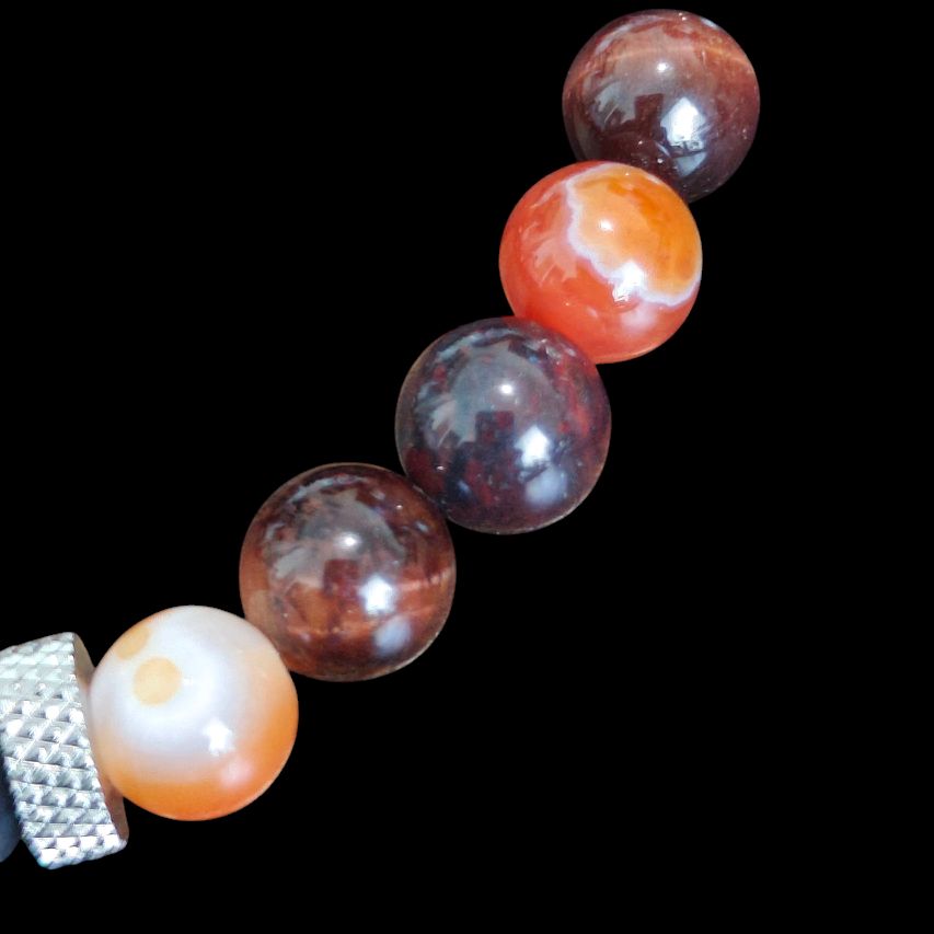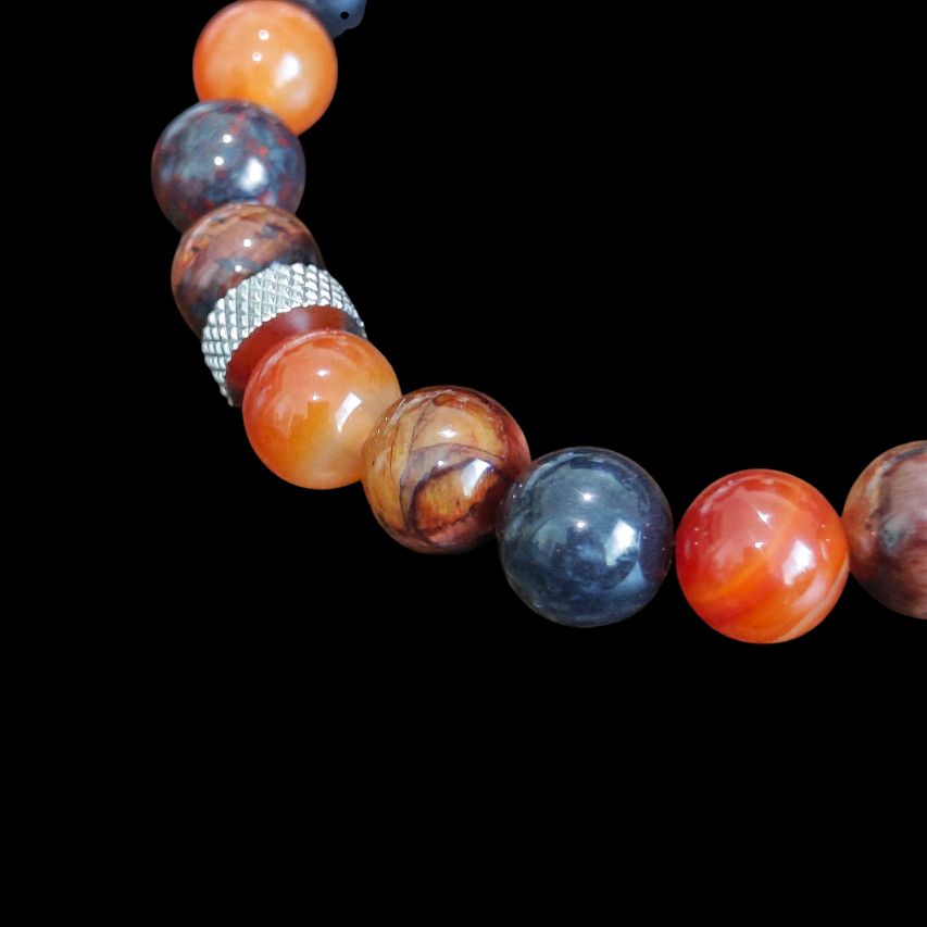 Natural Stone Elegance: This bracelet showcases Bloodstone Jasper, Red Tiger Eye, Striped Carnelian, and stainless steel spacers. The stones are high quality, ensuring durability and beauty. The stainless steel spacers won't tarnish, maintaining the bracelet's pristine look. Perfect for both men and women, it's a versatile accessory.