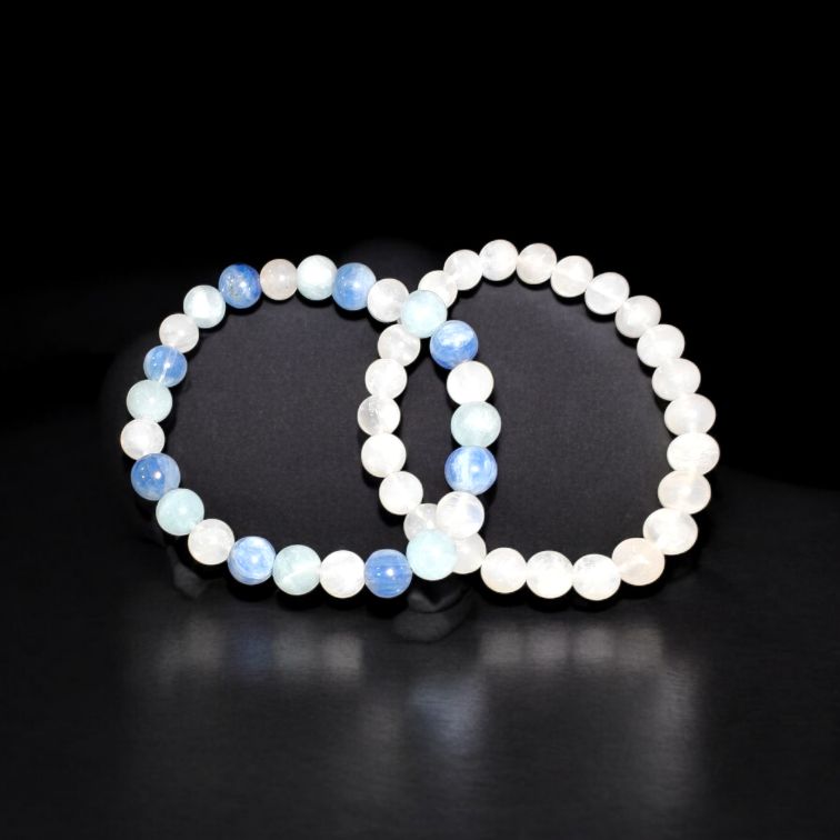 Kyanite, Aquamarine, Moonstone Bracelet Stack 2 Pieces 8mm Unisex
