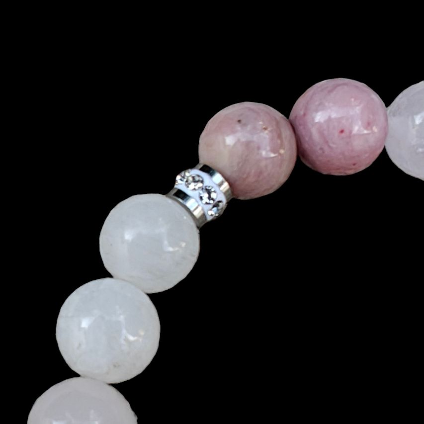 Moonstone, Rhodonite, Rose Quartz Bracelet with Stainless Steel Cubic Zirconia Spacers 8mm