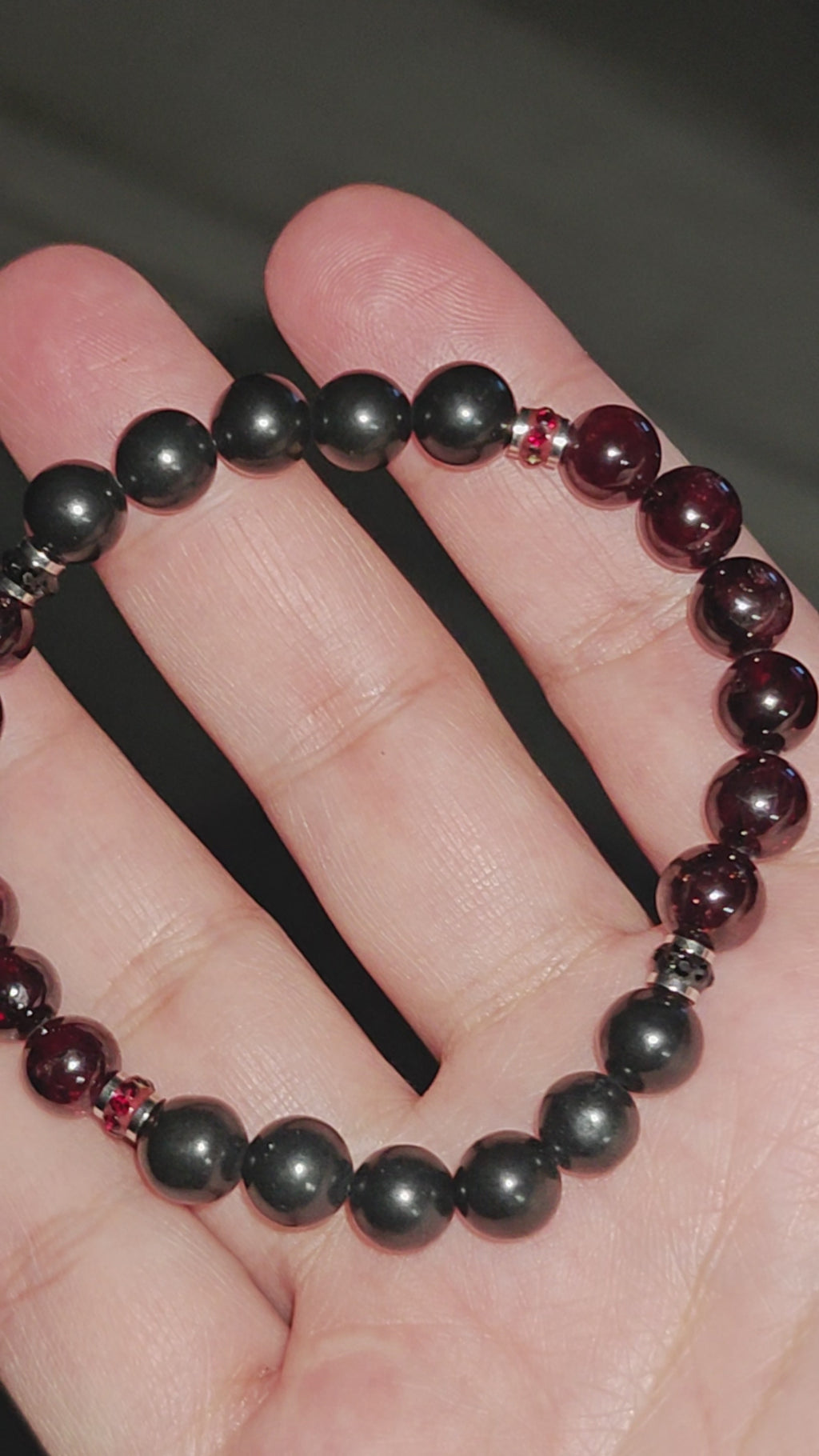 Material: This bracelet features 8mm natural shungite and garnet stones.